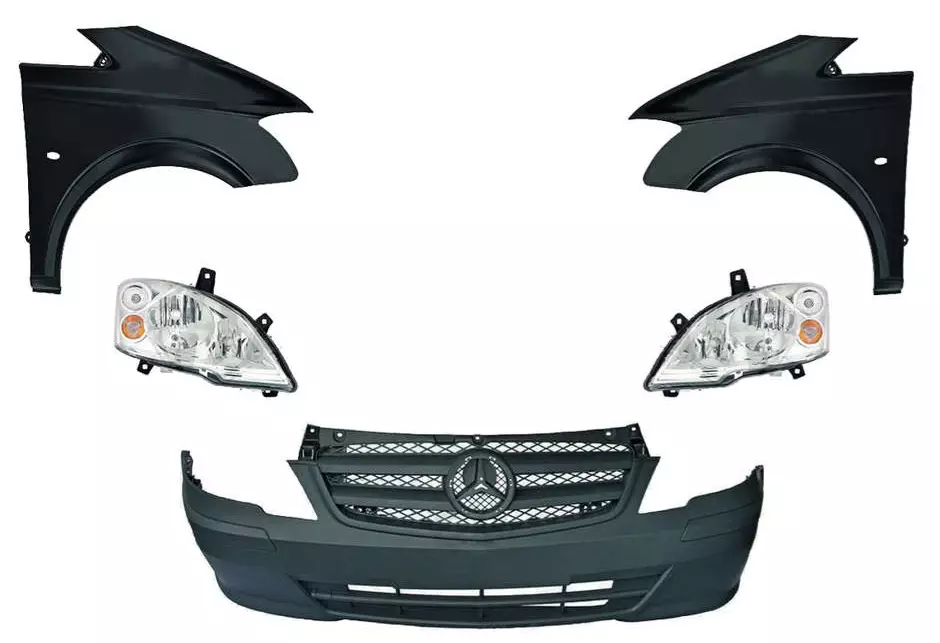Keulan muunnossarja MB Vito W639 2003-2009. Paketti sisältää uudemman mallin lokasuojat, etupuskurin, maskin sekä ajovaloumpiot (H7 halogen). Päivitä MB Viton keula Facelift malliseksi tällä osapaketilla.